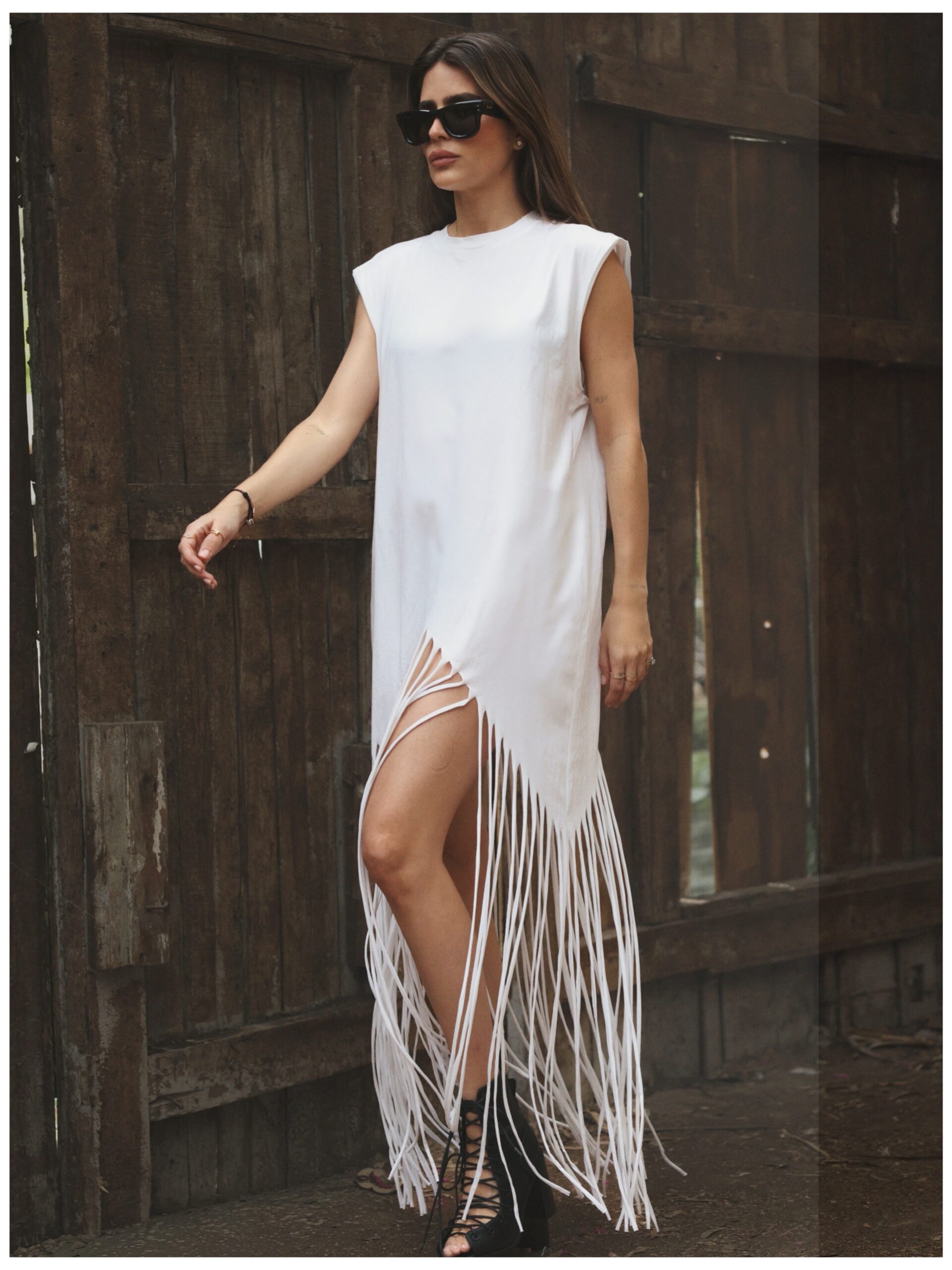 שמלת פרנזים לבנה